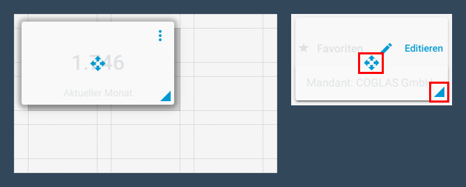 Die Widgets werden zum Dashboard hinzugefügt, indem das gewählte Widget auf das Dashboard gezogen und abgelegt wird.