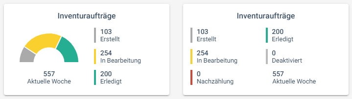 Aktuell werden nur über die Einzelwerte alle Lagerkennzahlen dargestellt. Hierfür stehen folgende Datenquellen (Widgets) zur Verfügung: