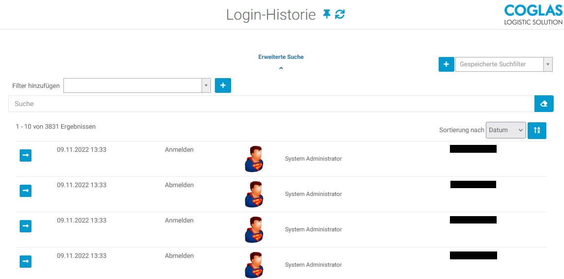 Die Login-Historie muss durch das COGLAS-Team freigeschalten werden.