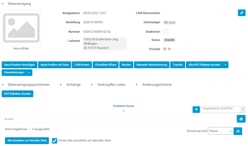 The goods can be divided. Photos of the loading unit can be stored. In addition, existing NVE/SSCCs can be scanned and used for further progress. Several loading units can be created and different LHM types can be stored.