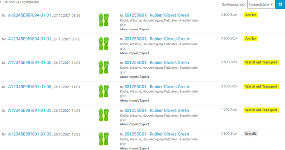 In the created parts lists can be searched and filtered, displayed results can be sorted.