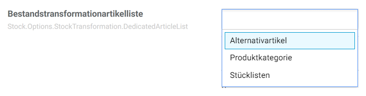 | Alternative articles | The stock transformation function reduces the selection of article numbers based on the alternative articles stored on the source article. |