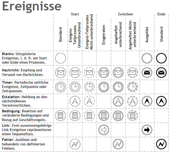 Zeichenerklärung BPMN (Business Process Model and Notation)
