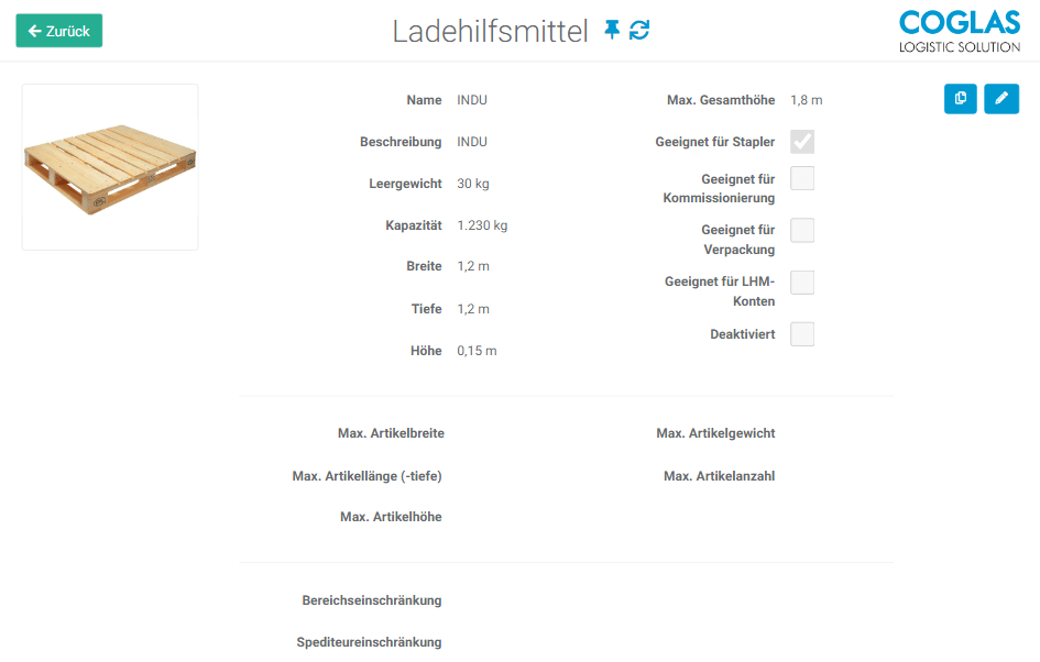 Max. Gesamthöhe Maximale Höhe des Ladehilfsmittels inkl. Artikel. Dieser Wert wird für die Volumenberechnung berücksichtigt.