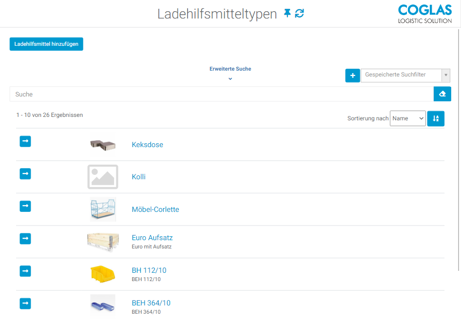 Es lassen sich eigene Ladehilfsmitteltypen anlegen, die innerhalb der Prozesse genutzt werden können.